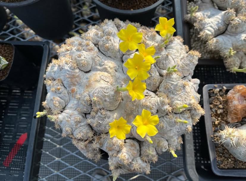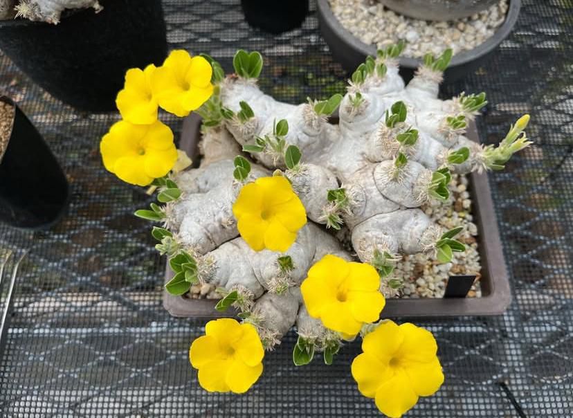 A rare and striking caudex succulent, Pachypodium brevicaule is admired for its thick, flattened trunk and unique, compact form. Its sculptural appearance makes it an exceptional centerpiece for collectors seeking a bold and exotic plant.
